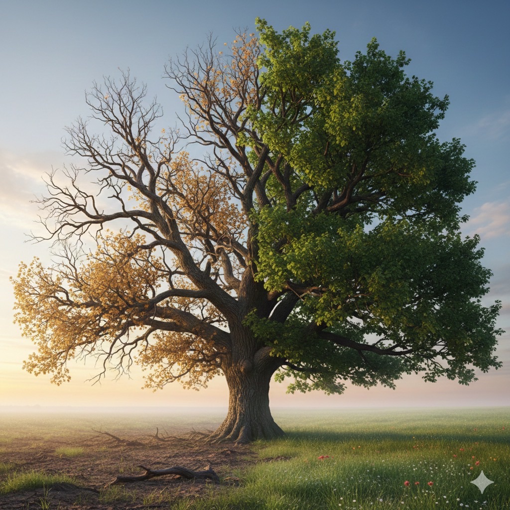 I woke up and sat in front of a tree at the corner of our driveway. Since it is currently the dry season here in Nigeria, the tree was withering; I noticed that while some parts were still vibrant and green, others were completely dried out. This tree, which once looked so grand and beautiful, now appeared diminished simply because some of its branches and leaves had died.